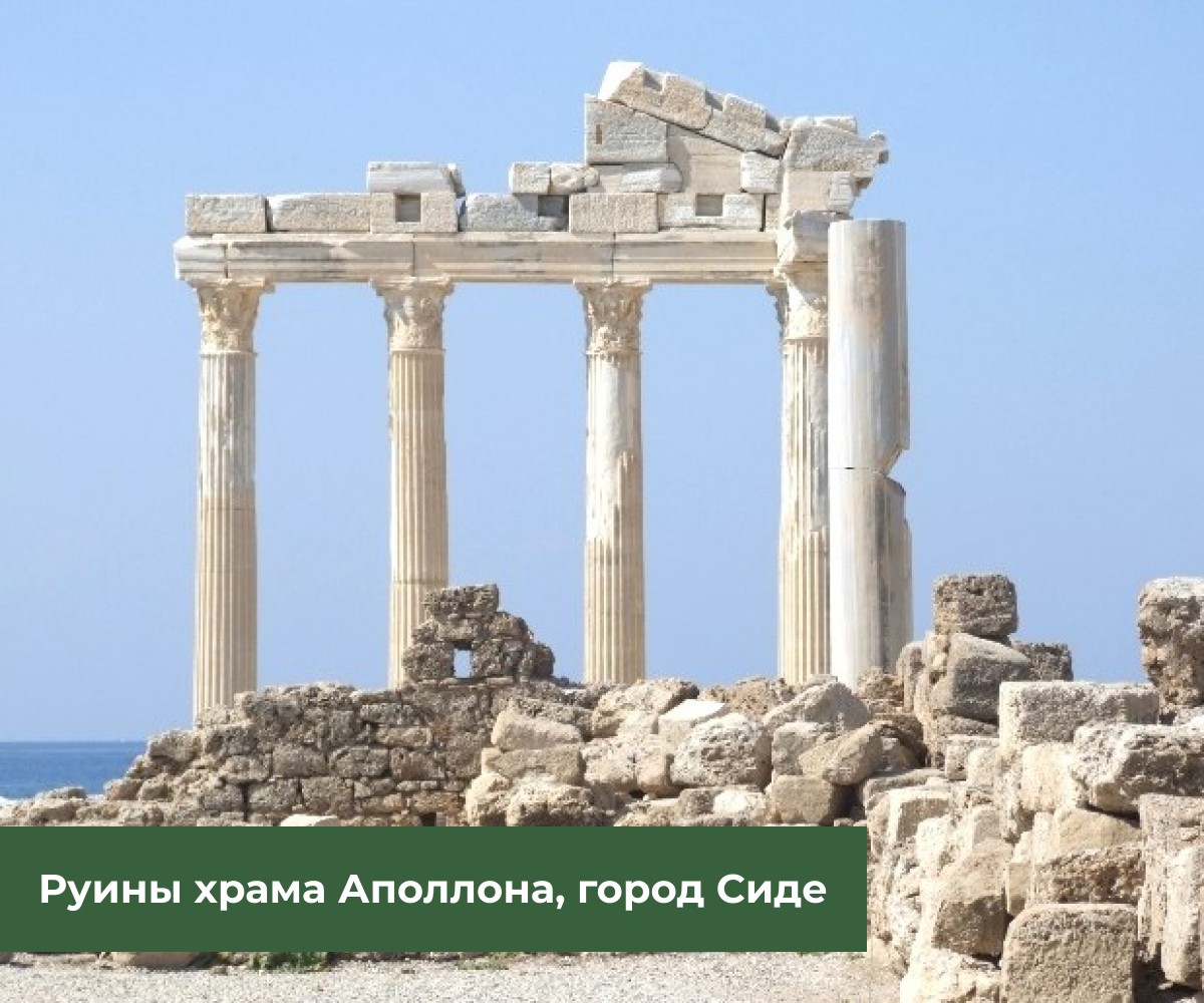 Сиде — город, построенный в эпоху Древней Греции. Вы увидите символ города — храм Аполлона, возведенный в честь...