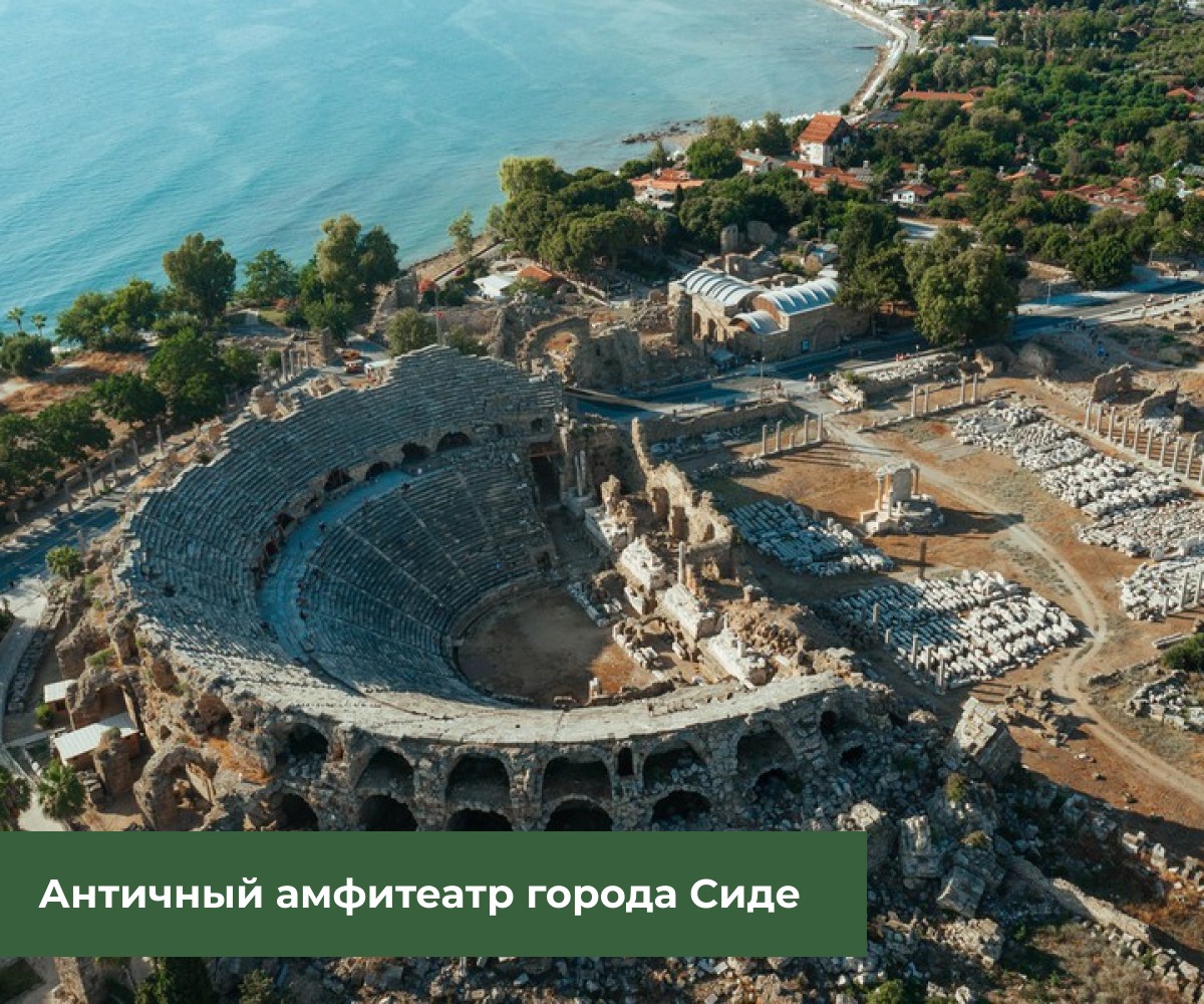 Сиде — это не только курортный город на юге Турции, но и богатый античными памятниками исторический центр. Вы увидите остатки храма Аполлона и триумфальной арки, крепостных стен и амфитеатра. Услышите о средиземноморских перипетиях, которые отразились и на этом городе. А затем посетите дивный водопад и познакомитесь с убранством крупнейшей мечети на побережье Анталии.