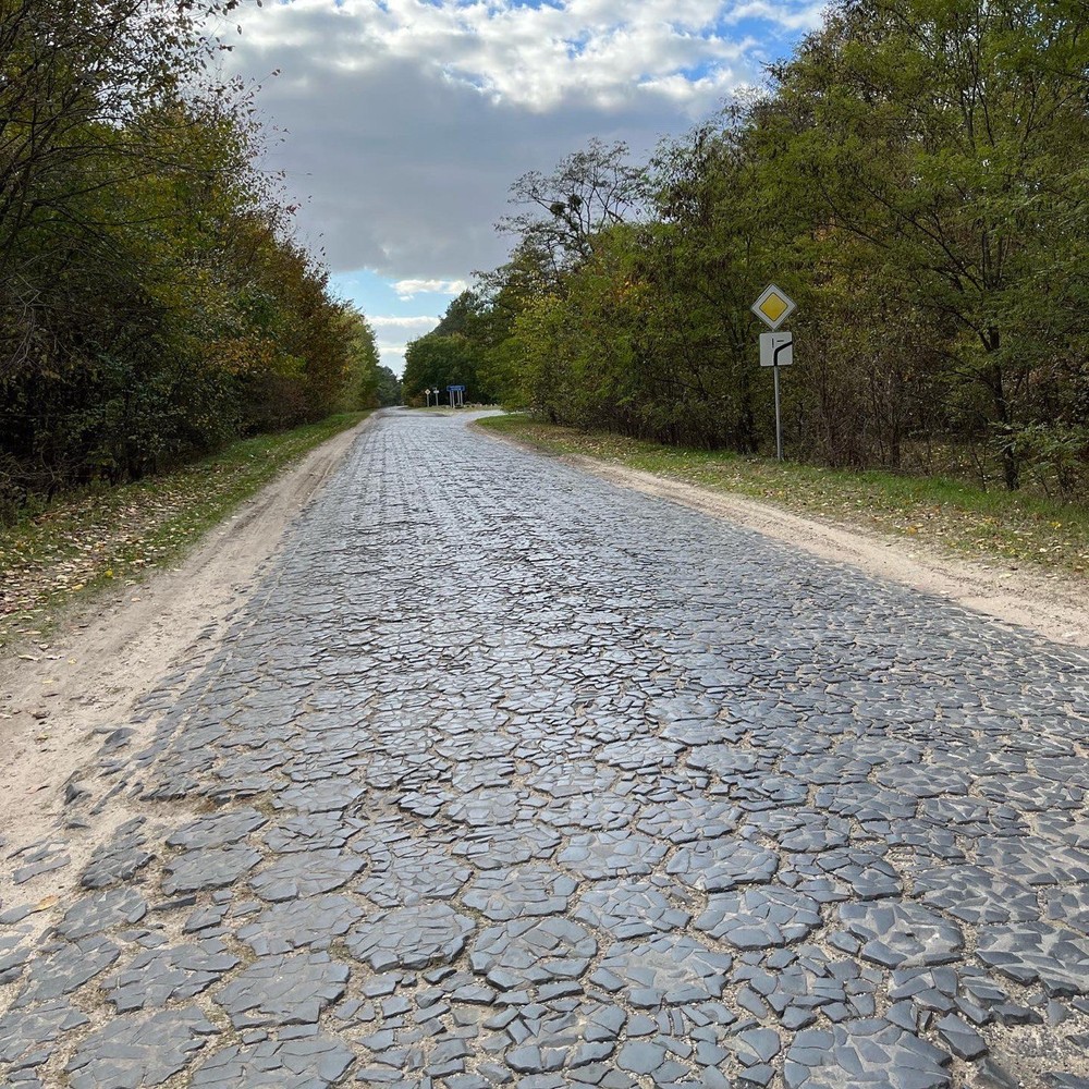 - Первое шоссе на Полесье, мощёное знаменитой польской плиткой «трилинкой»