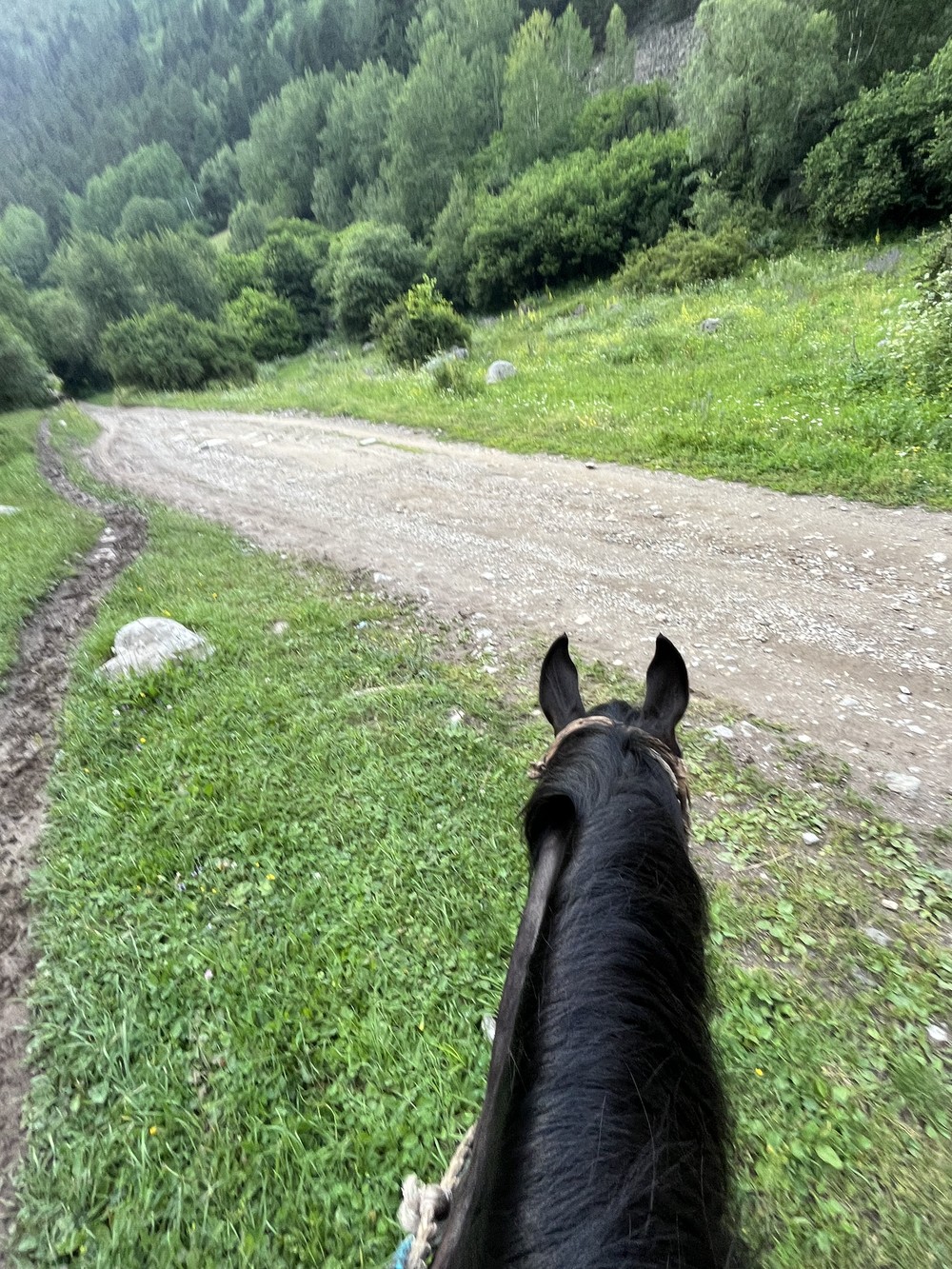 - Трансфер — ~1300 ₽ за машину для 4 чел. от Домбая до конюшни и назад в Домбай
