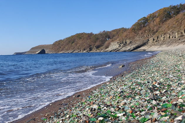 Приглашаю на экскурсию на Стеклянный пляж, или как говорят местные жители «Стекляшка», совершенно уникальное место. Мы прогуляемся по пляжу, разглядывая стеклянные камешки. В теплое время года здесь можно искупаться: вода чистая. Я заберу и отвезу вас до отеля.
